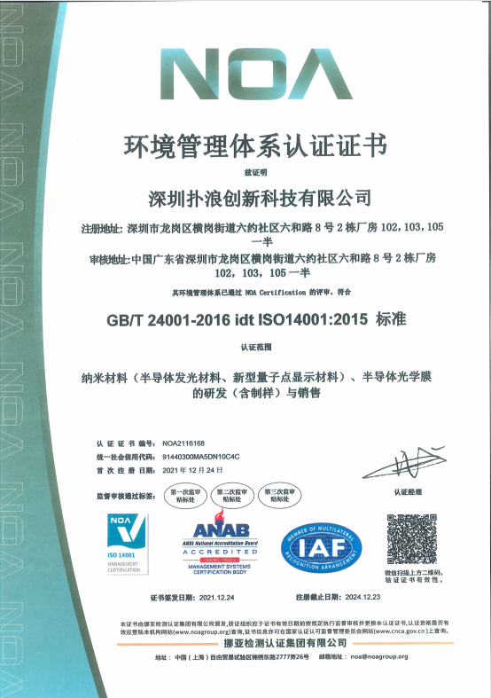 2021年12月24日,AG尊时凯龙人生就创新通过审核,正式取得了环境管理体系认证证书。